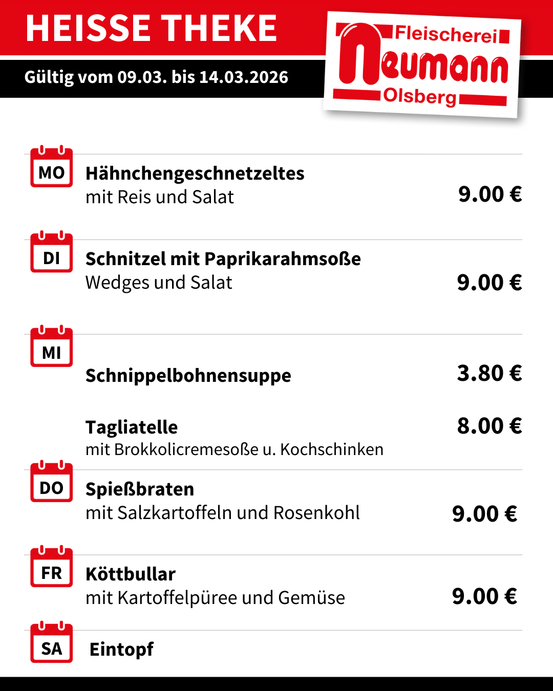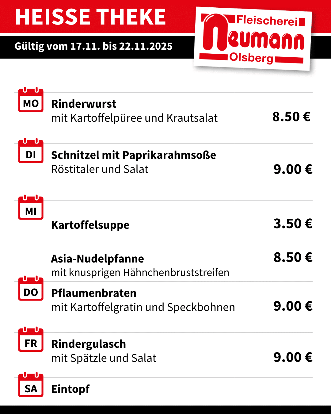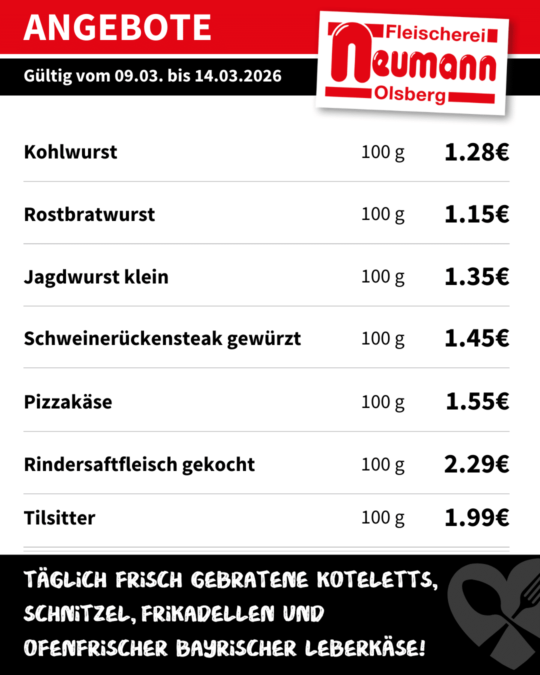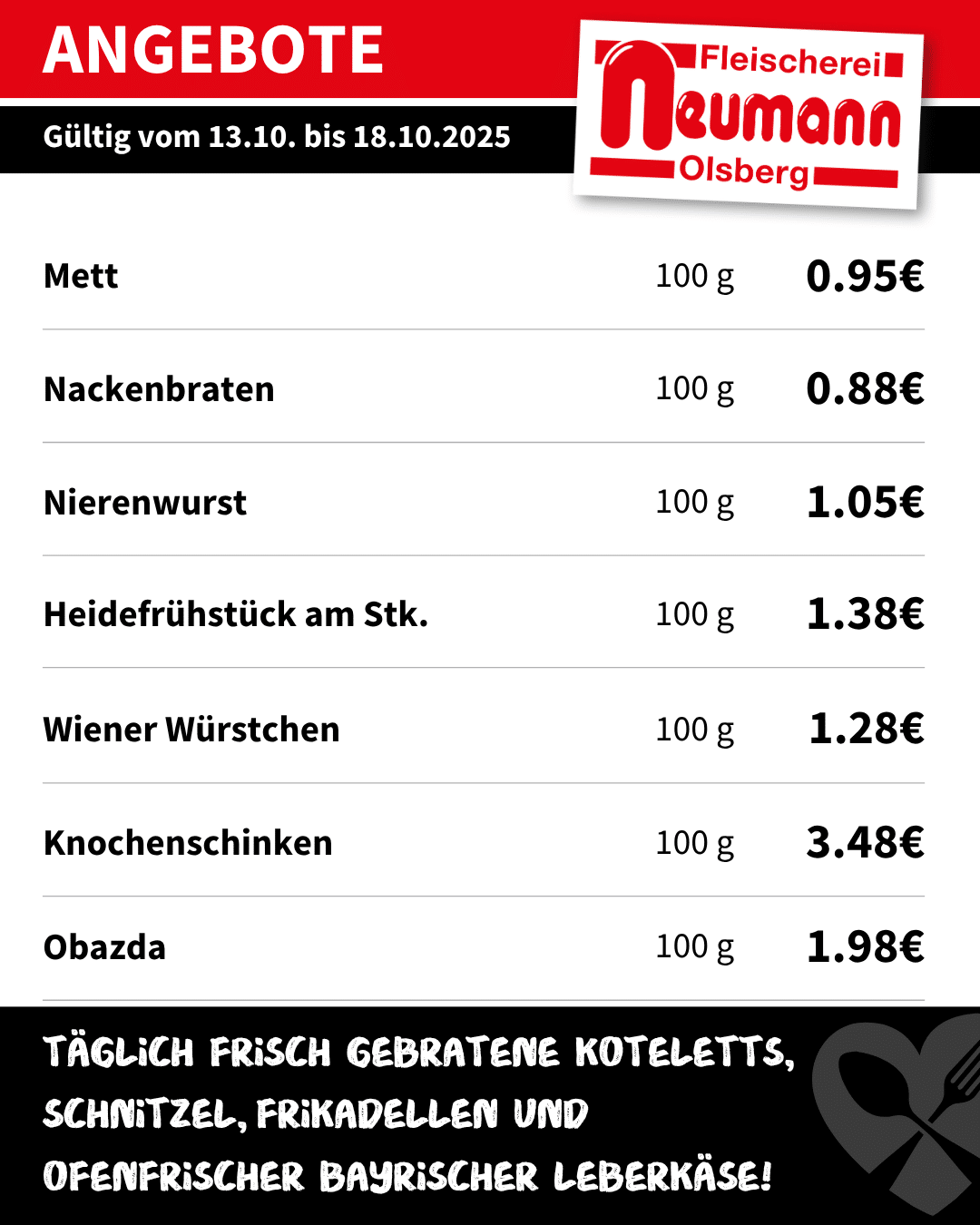 Wir bieten Ihnen wöchentlich eine Vielzahl an Angeboten aus unserer Ladentheke. Die aktuellen Angebote finden Sie auch bei uns in unseren Social Media-Kanälen und als kleinen Flyer zum Mitnehmen bei uns im Laden.